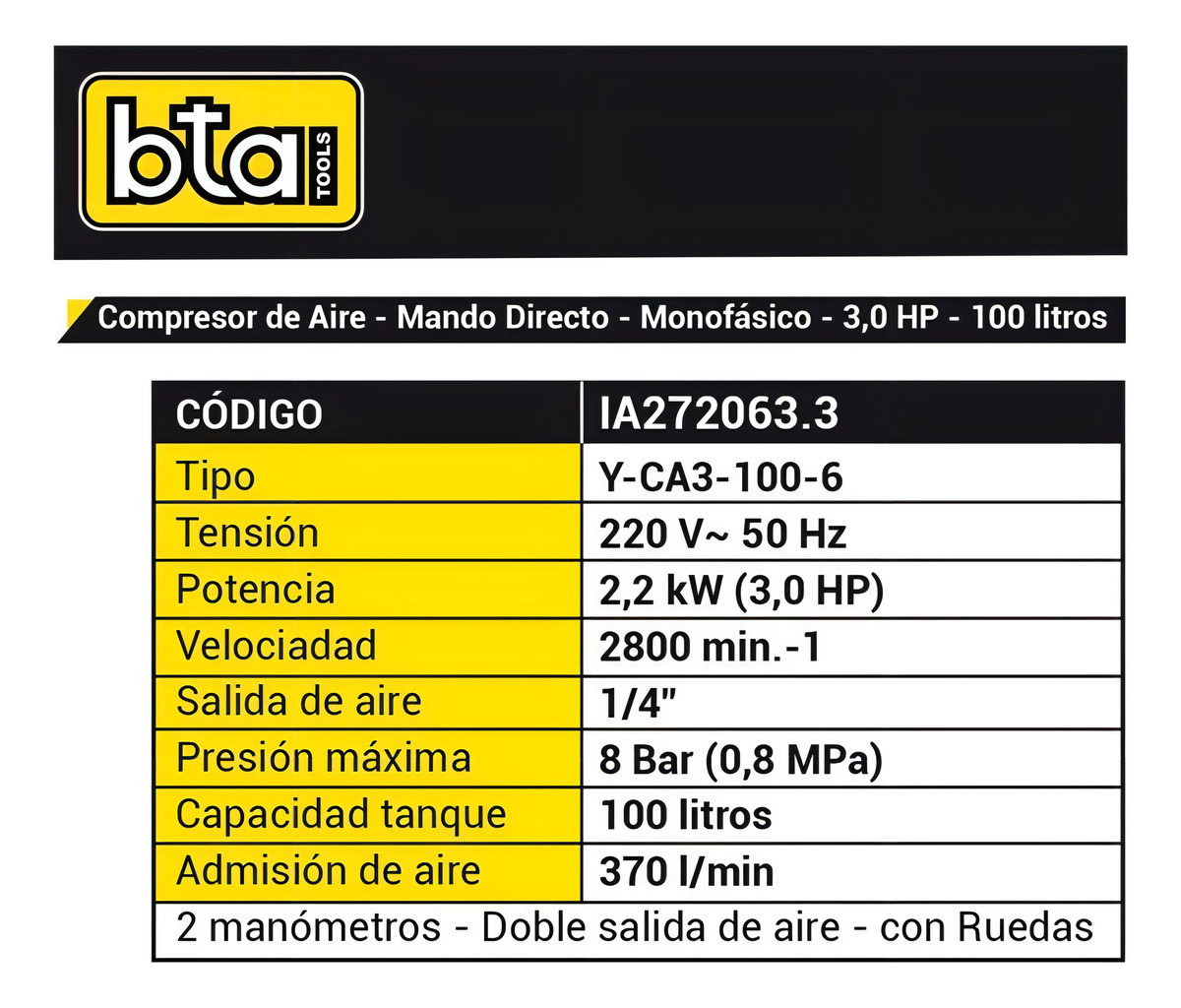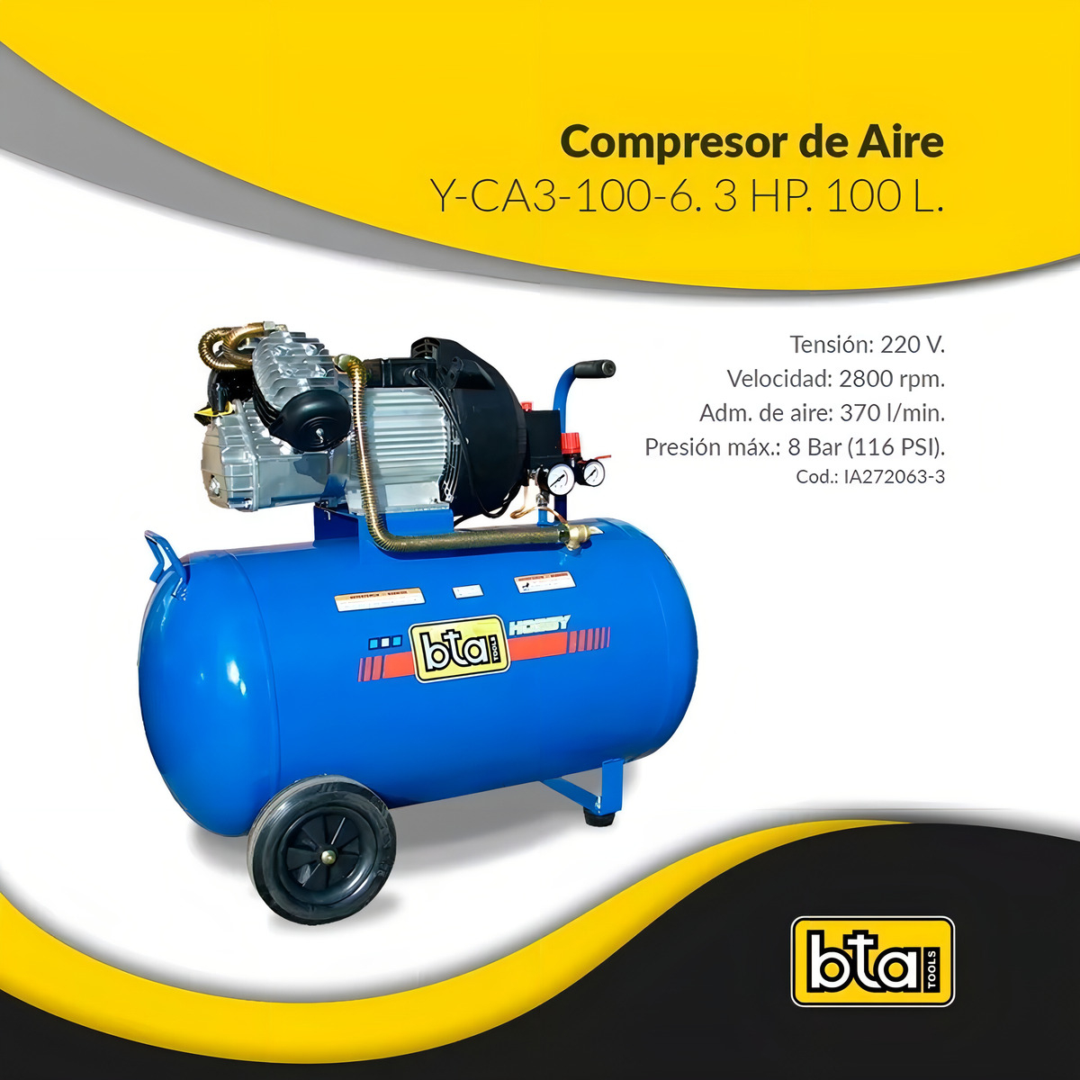 Compresor De Aire Eléctrico Portátil Bta Tools Y-ca3-100-6 100l 3hp