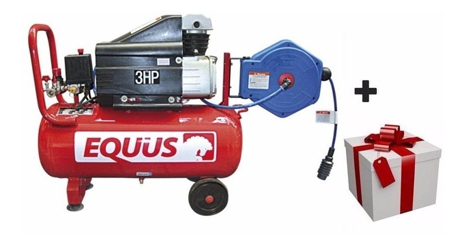 Compresor Equus 3hp 35 Litros Con Manguera Retractil 8m