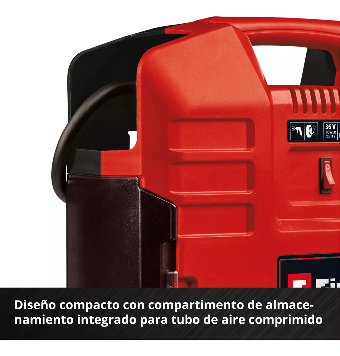 Compartimento de almacenamiento para manguera de aire comprimido en la carcasa