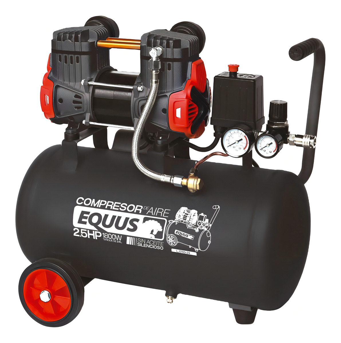 Alta Potencia y Eficiencia: Con una potencia de 2.5 HP y una capacidad de tanque de 24L, este compresor está diseñado para manejar diversas tareas de manera eficiente.