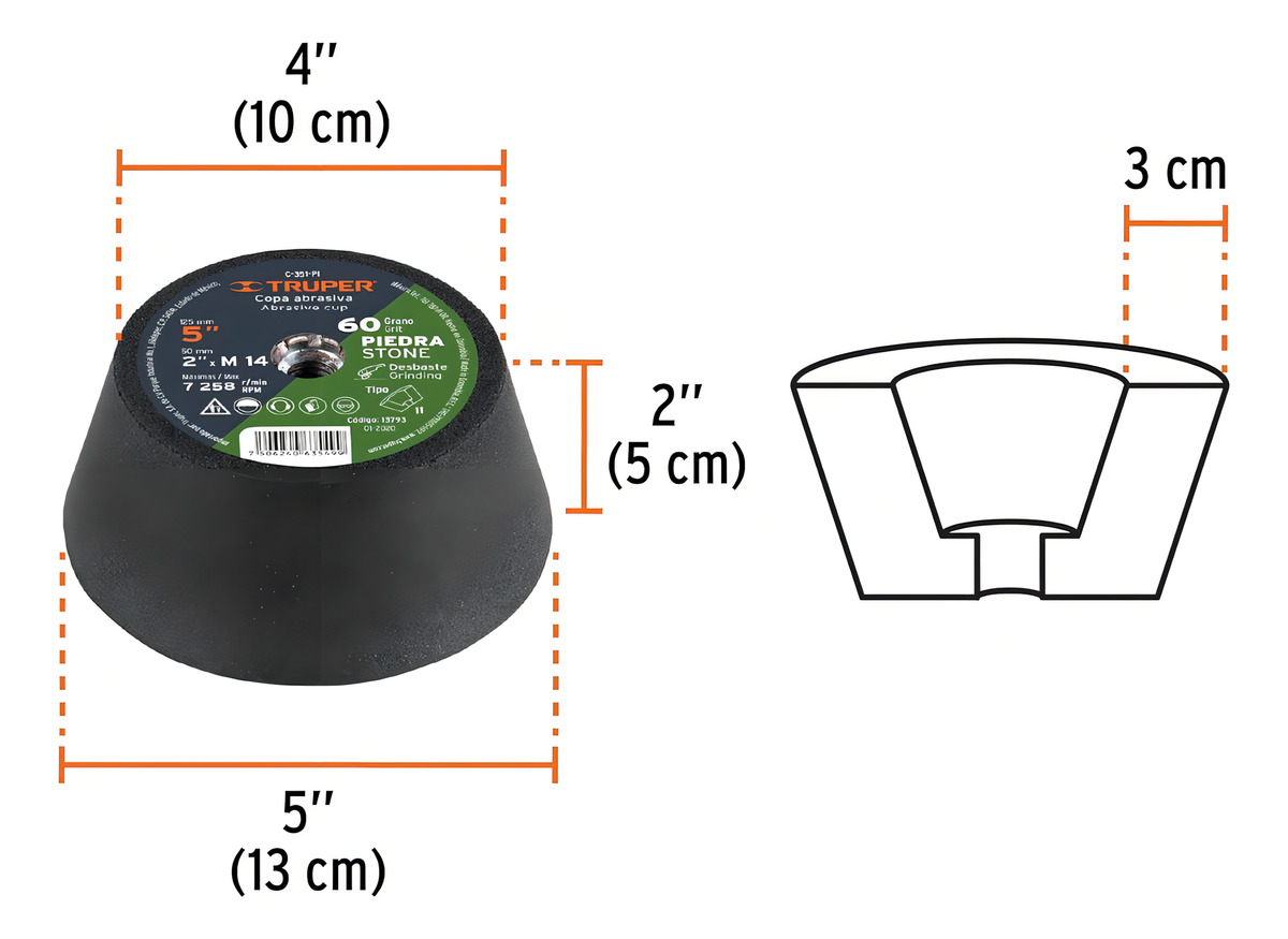 / Copa Desbaste Piedra 5» Grano 60 Ent. M14 Truper 13793