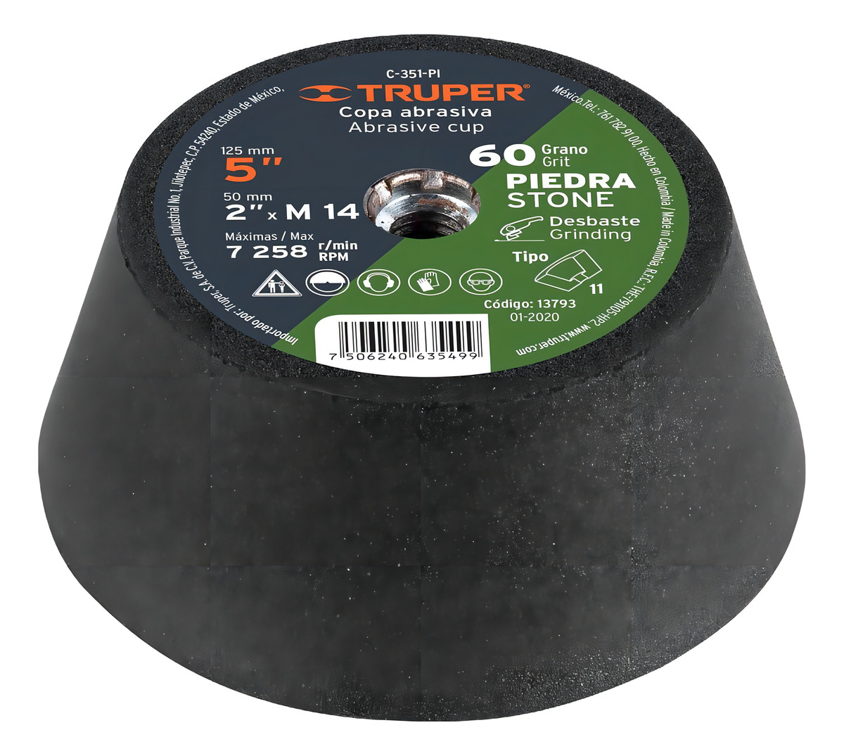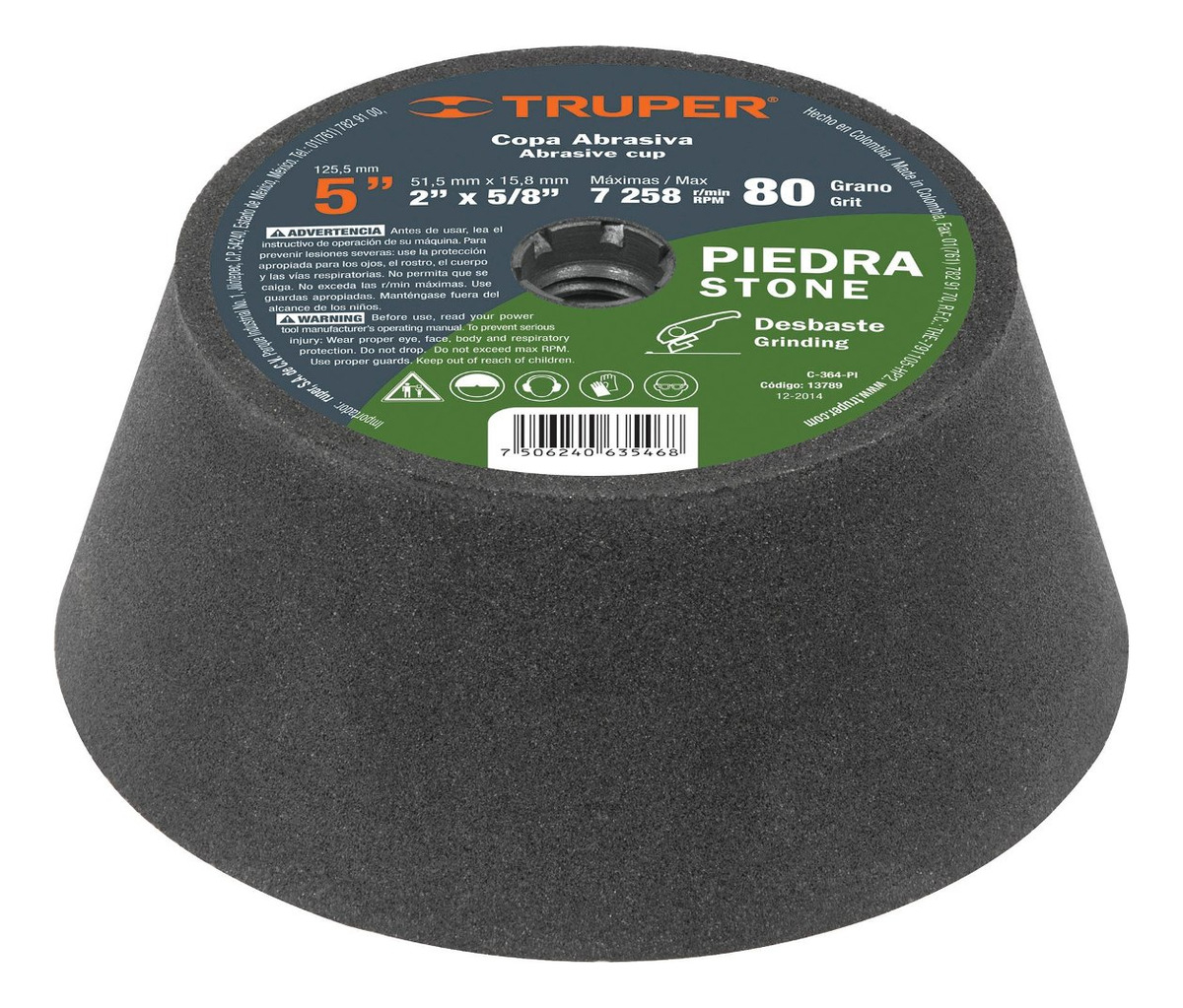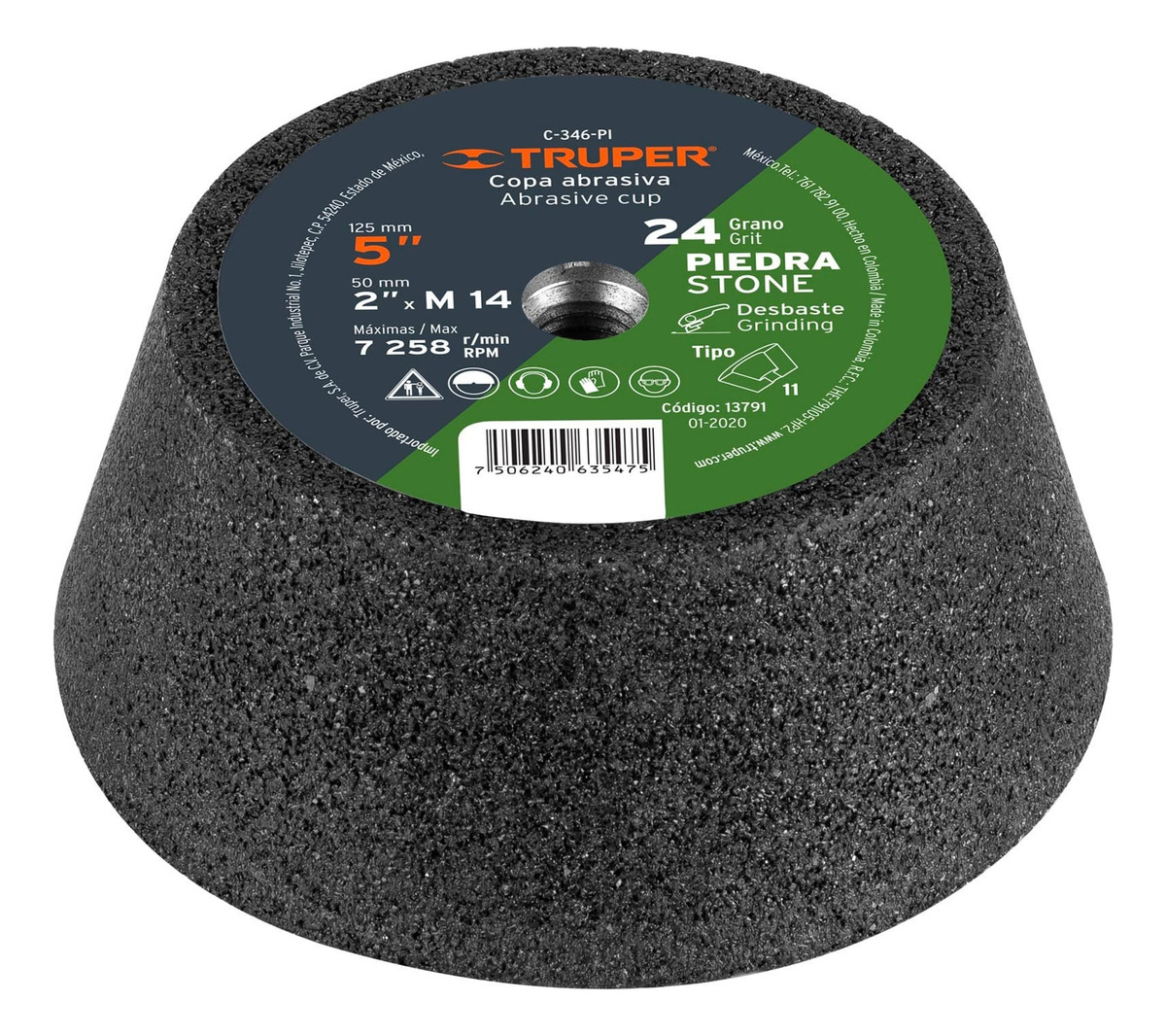 Copa Desbaste Piedra 5'' Grano 60 Ent. M14 Truper 13793 cantidad