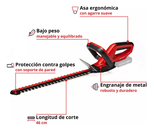 El cortasetos a batería GC-CH 1846 Li es una herramienta eficiente gracias a su pequeño peso y cómodo tamaño, ideal para el cuidado de setos, arbustos y matorrales en grandes terrenos y huertos familiares sin necesidad de tener una red eléctrica cerca.