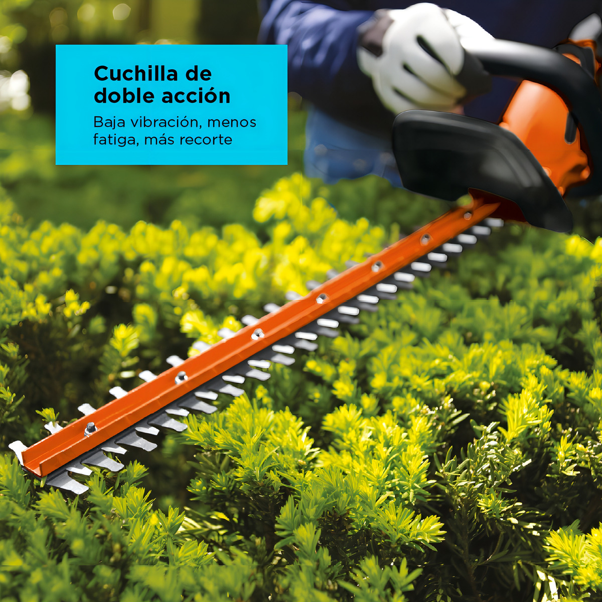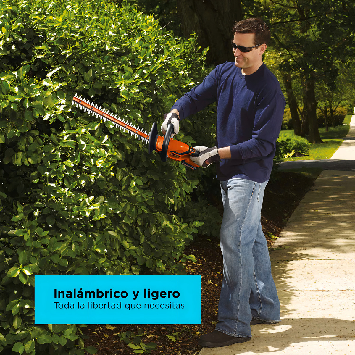• Corta rápidamente ramas de 3/4 in. de grosor. Corta hasta 3000sq-ft de setos por carga.