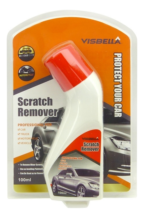 Este producto es una crema quita rayas y pulidor de la marca Visbella, diseñada para eliminar rayaduras o raspones de la pintura de cualquier tipo de vehículo, ya sea auto, camioneta, jeep, camión u otro. Viene con una goma espuma para dosificar y aplicar el producto sobre la rayadura. Contenido neto 100ml.
