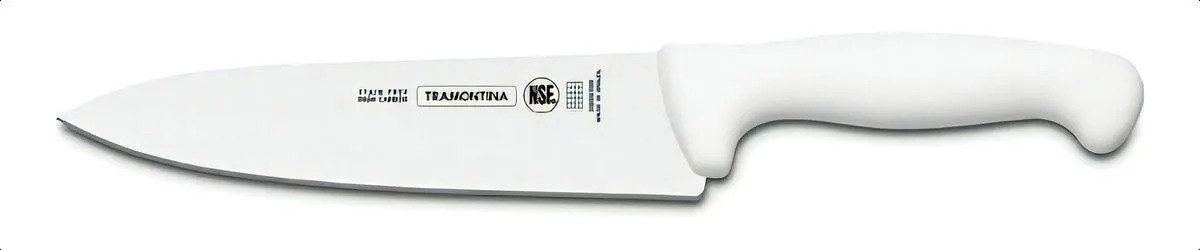 Cuchillo Para Carne De Chef 8 Profesional Tramontina Color Blanco. Los cuchillos de la Línea Premium se caracterizan por su diseño moderno y el mango de polipropileno con textura, que proporciona comodidad y seguridad durante su uso. El filo de alta durabilidad facilita el corte de los alimentos, gracias al tratamiento térmico aplicado a las láminas de acero inoxidable.