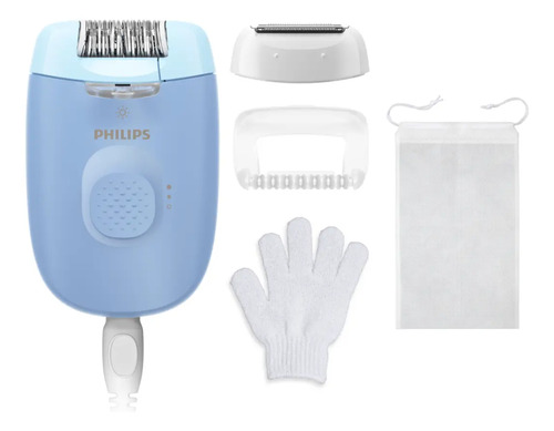 Exfolie la piel para ayudar a prevenir el vello subcutáneo. Recorte previamente los vellos más largos con el peine-guía para una mayor comodidad de la piel. Depile las áreas deseadas y coloque el cabezal masajeador hasta que oiga un clic para obtener una sensación de depilación más suave. Luego, cuando esté en movimiento, ponga la depiladora en la funda.