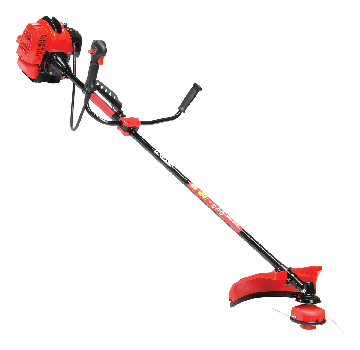 Esta desmalezadora de alta potencia está diseñada para ser llevada en el hombro, facilitando su uso y transporte. Ideal para trabajos de jardinería y mantenimiento de terrenos que requieren potencia y eficiencia.