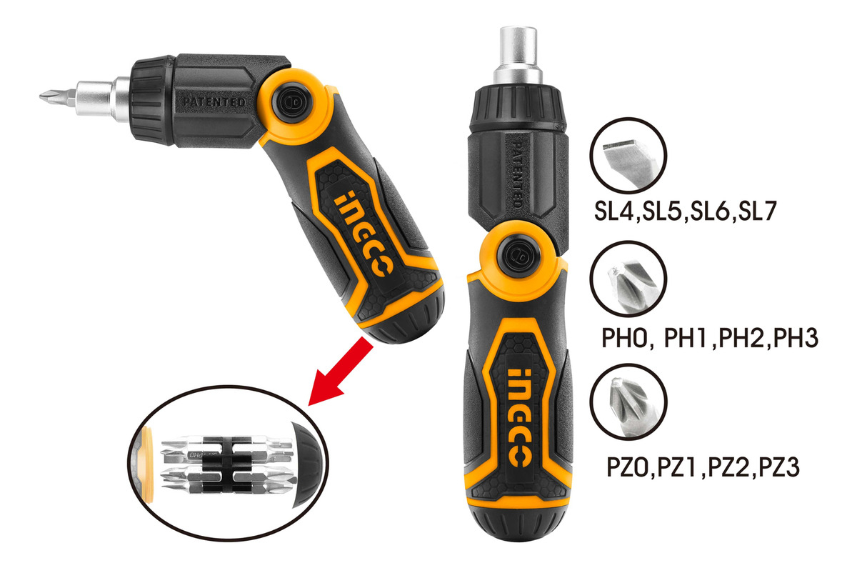 Destornillador 13 En1 Articulable Con Crique Ingco Akisd1208
