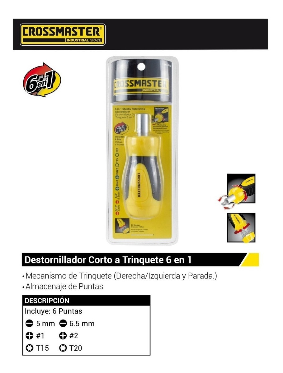 DESTORNILLADOR CORTO A TRINQUETE 6 EN 1 CROSSMASTER