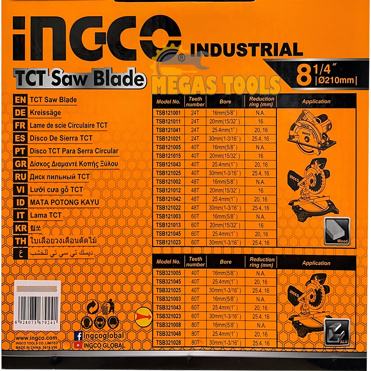 Disco De Sierra Circular Para Aluminio 210mm-8.1/4 Ingco