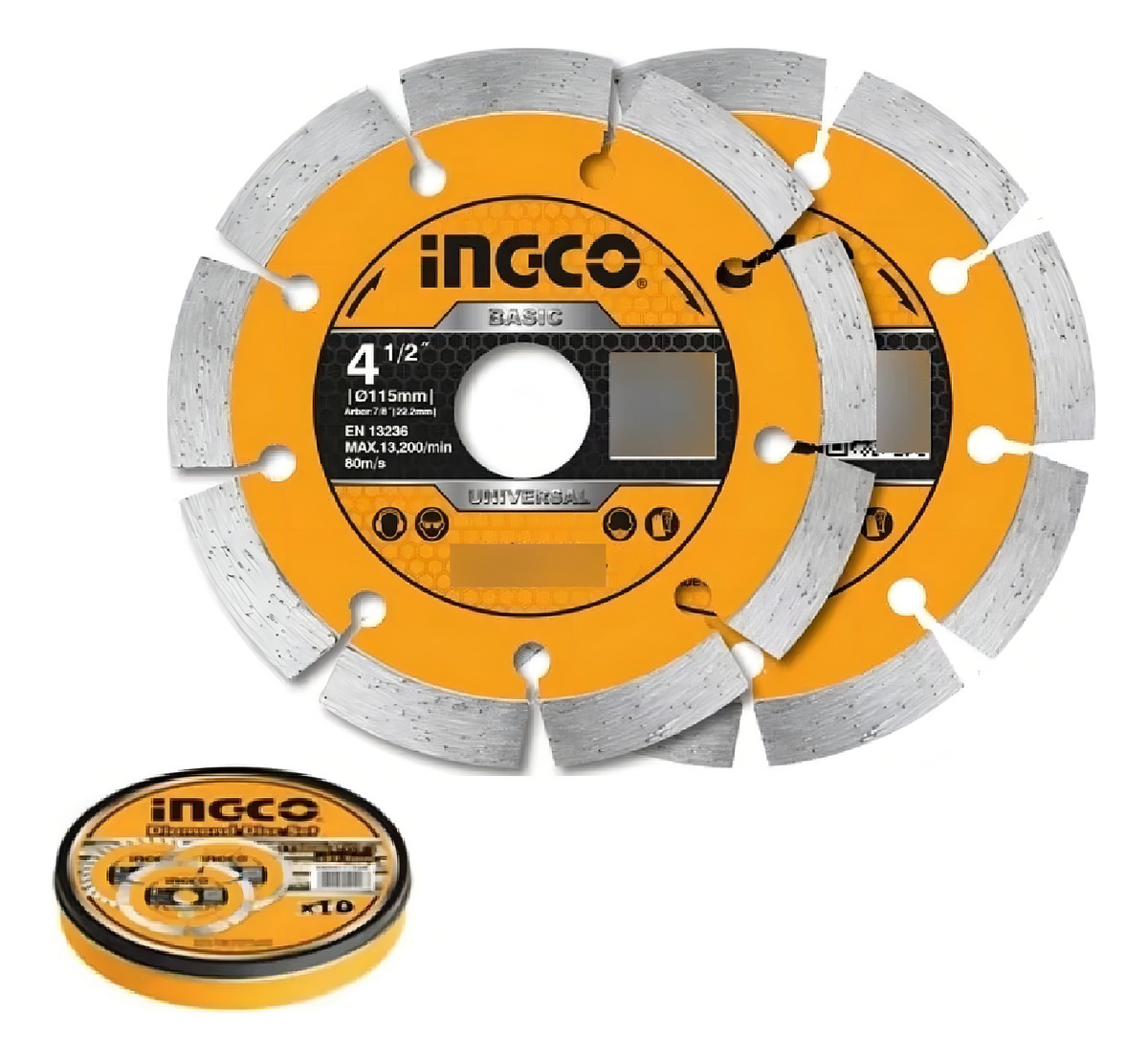 Disco Diamantado X10 Pcs. 115mm 4/12» X 22,2mm Ingco Color Amarillo