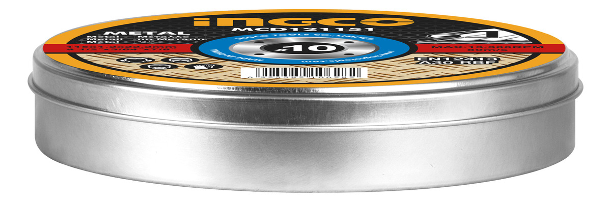 Discos De Corte 4 1/2 '' Ingco 1.2mm Caja Metálica X 10 Unidades cantidad