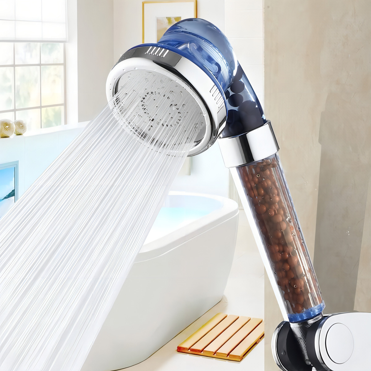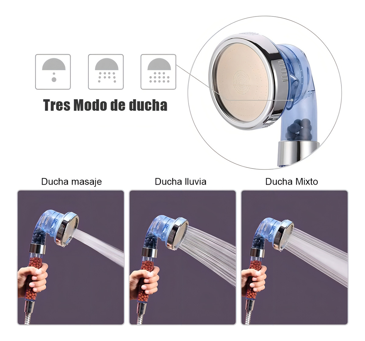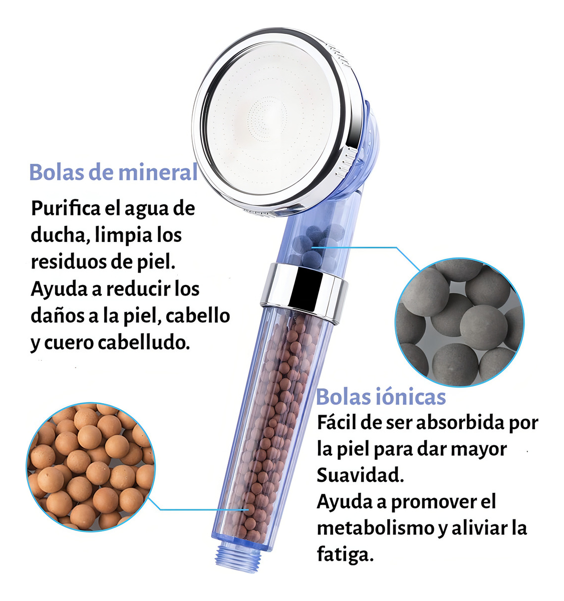 El cabezal de ducha brinda una nueva dimensión de lujo. El cabezal compacta el agua a través del proceso de un filtro iónico purificador y las bolas minerales.