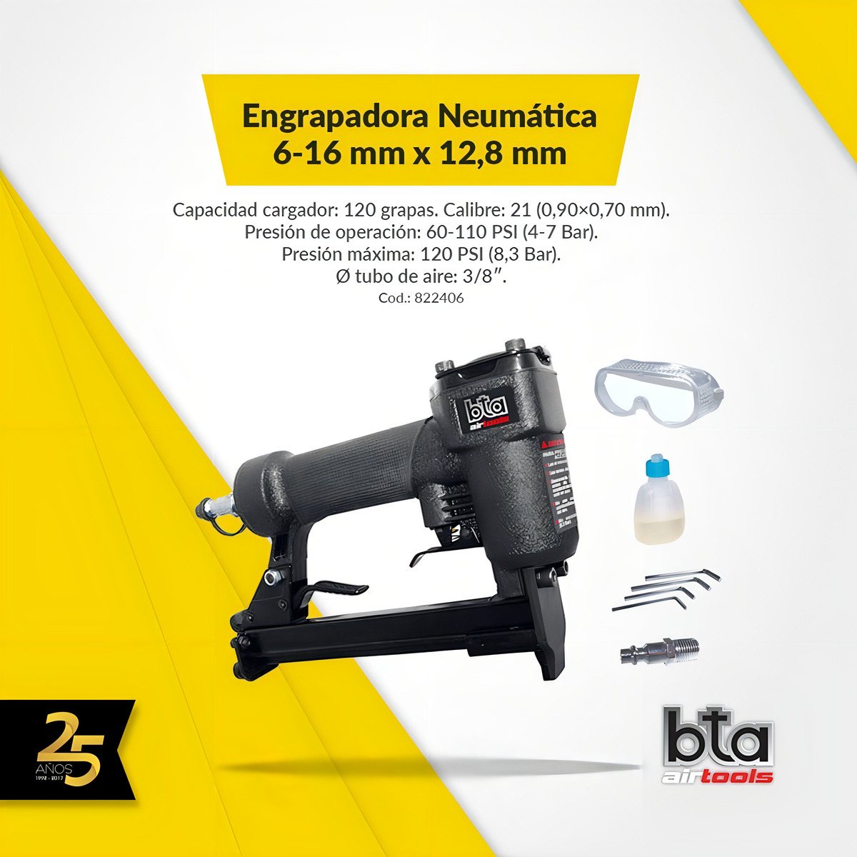 Engrampadora Neumática Bta 822406 Para Madera Y Enchapado 6-16mm