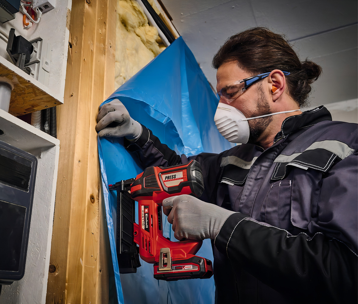 La clavadora inalámbrica FIXETTO 18/38 S de Einhell Professional es un potente ayudante para trabajos de renovación y decoración en su propia casa. Ya se trate de tapizar muebles, grapar tablones de madera o fijar láminas, lonas o materiales aislantes, con la grapadora de batería podrá elegir fácilmente entre disparos individuales o en serie mediante el regulador de disparo, en función de la carga de trabajo. La robusta caja de engranajes y la tecnología PressAir sin mantenimiento permiten hasta 60 impactos por minuto, mientras que el ajuste de profundidad garantiza una profundidad de impacto variable y precisa de las grapas. El gran cargador está equipado con un indicador de nivel de llenado y tiene una capacidad máxima de 100 grapas. Puede abrirse fácilmente y rellenarse con sólo pulsar un botón. La clavadora inalámbrica puede utilizarse con grapas de 10 a 38 mm de longitud y 5,7 mm de ancho. Su diseño estilizado con laterales de goma y empuñadura ergonómica suave garantizan un manejo cómodo. La iluminación LED integrada en la carcasa a ambos lados garantiza una iluminación óptima del área de trabajo. La entrega incluye un práctico clip para el cinturón para guardarla de forma segura y 500 grapas. La boquilla de seguridad impide que la grapadora se dispare involuntariamente, protegiendo así contra lesiones. Se suministra sin batería ni cargador (se venden por separado)