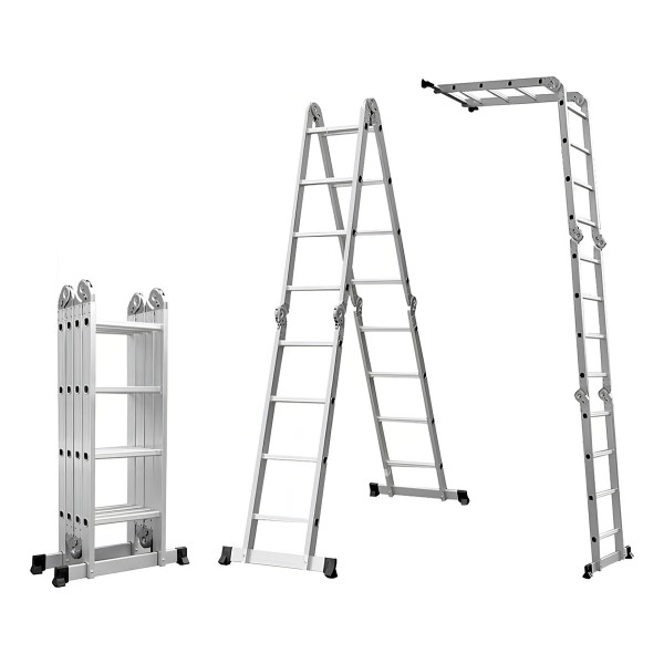 Escalera De Aluminio Multifuncion Trepor Am0116d Andamio De 16 Escalones Plateado