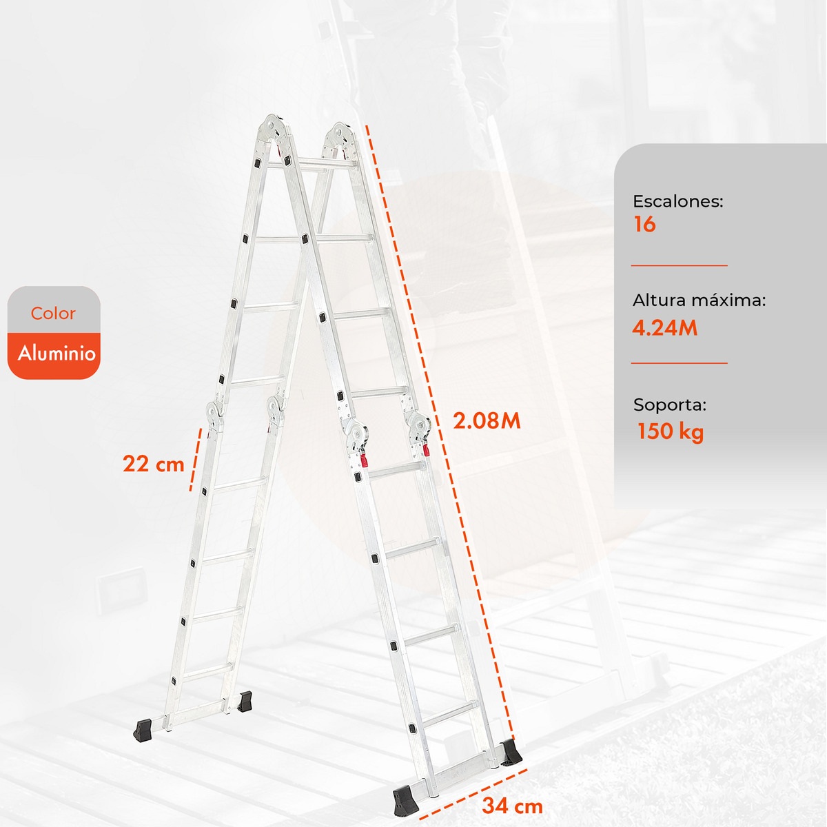 Al ser una estructura multipropósito, podrás colocarla en distintas posiciones. Además, tu seguridad estará garantizada y tendrás comodidad para trabajar de la manera adecuada. Al finalizar, tan solo la plegás y ocupará muy poco espacio.