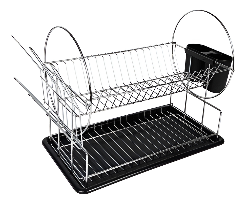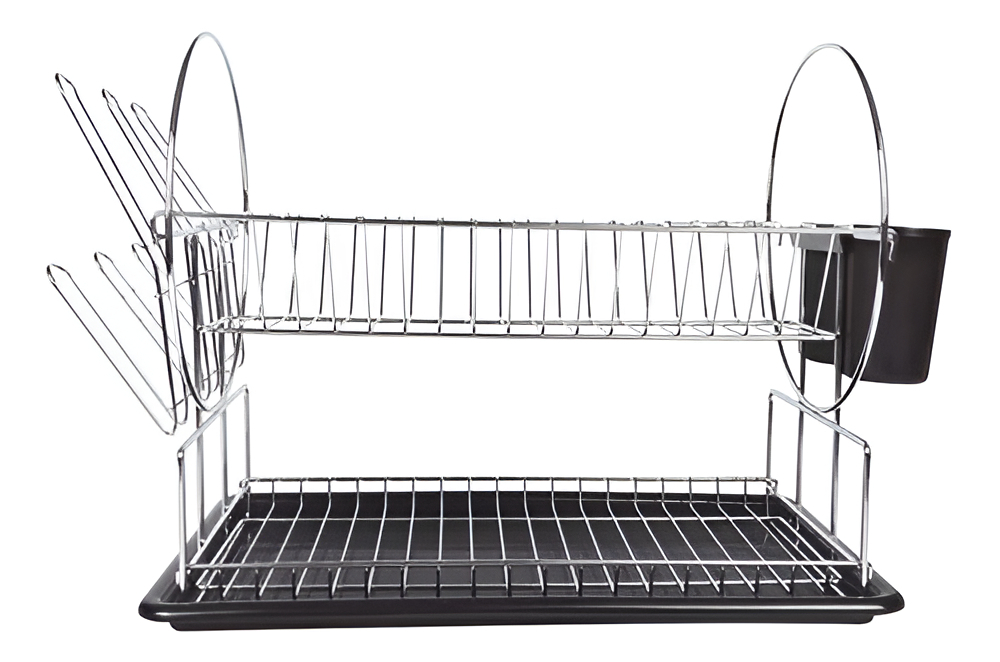 / Escurridor De Platos Maggiore De 2 Niveles, Negro, 19 Platos