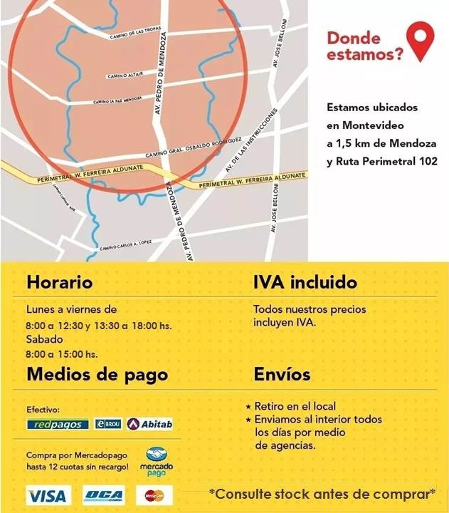 • Medios de Pago: Efectivo, Redpagos, Redbrou, Abitab, o compra por MercadoPago hasta 12 cuotas sin recargo!