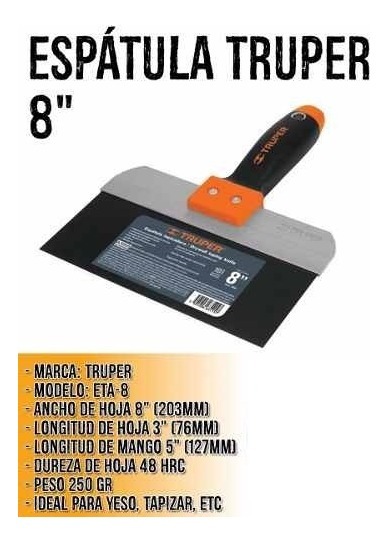 Espátula Para Yeso Truper Yesero 8. 203 Mm Mango Ergonómico