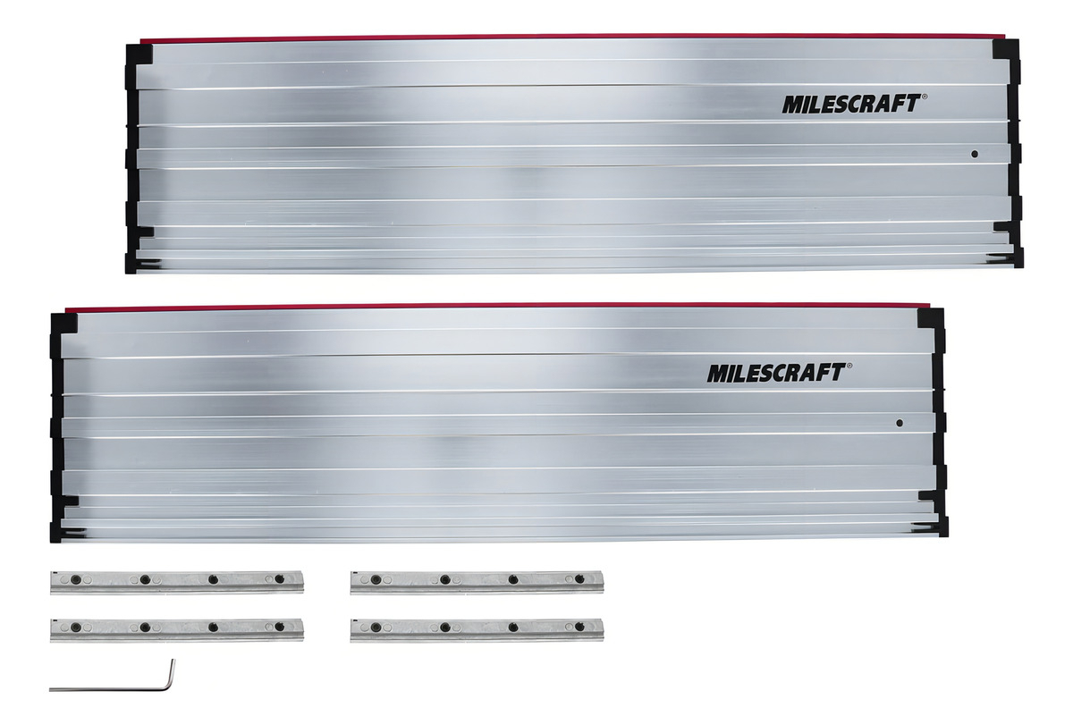 Extensiones de riel de 55 pulgadas para guía de sierra de pista. Alcance hasta más de 8 pies. Construcción de aluminio. Incluye 4 conectores de riel.