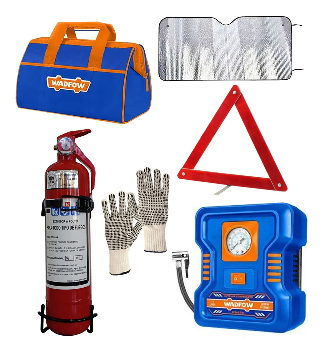 Extintor + Bolso + Inflador + Baliza + Guantes + Parasol cantidad