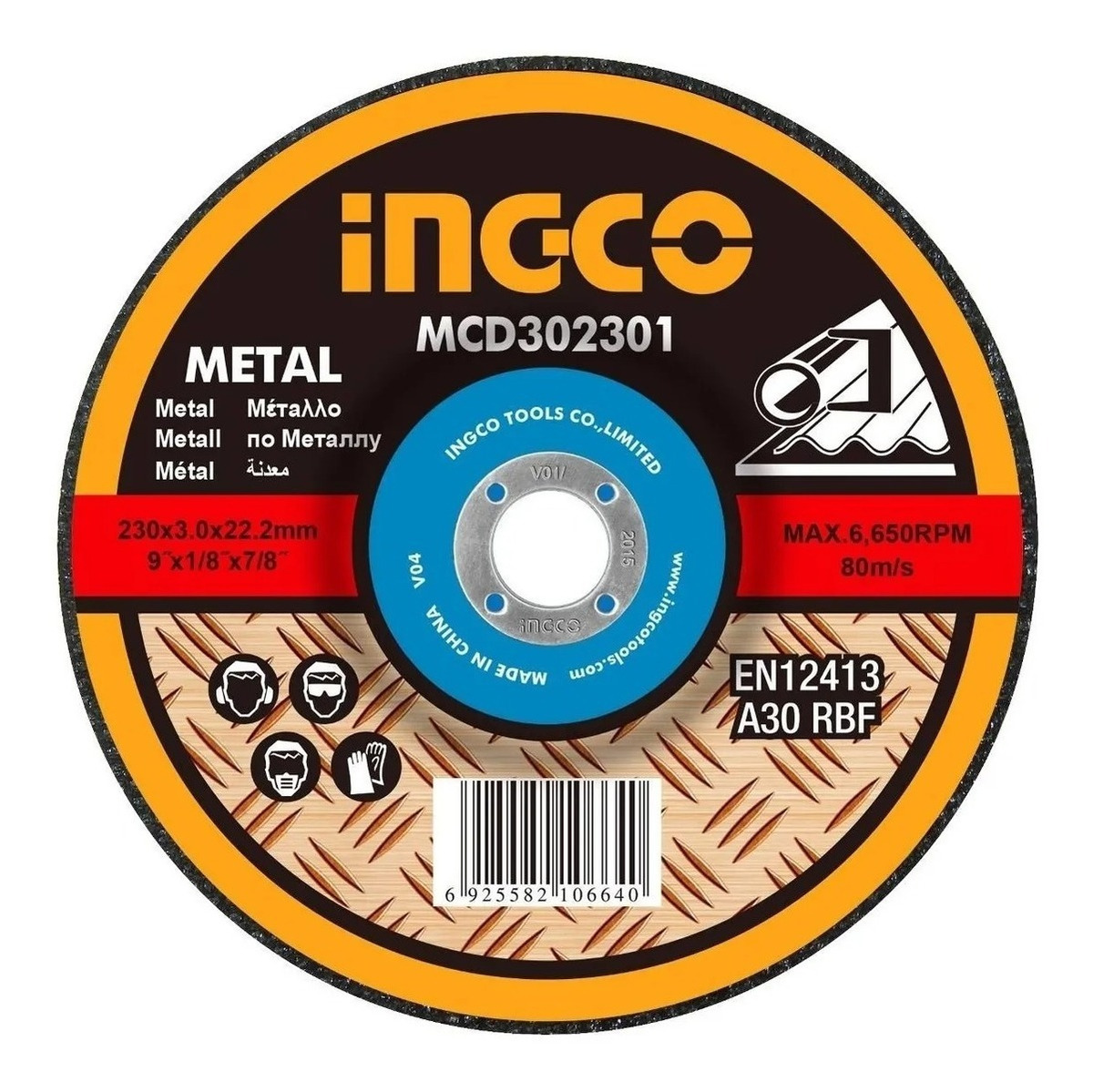 Disco Abrasivo Corte Metal 9 X 3mm Centro Deprimido Ingco M Color Amarillo