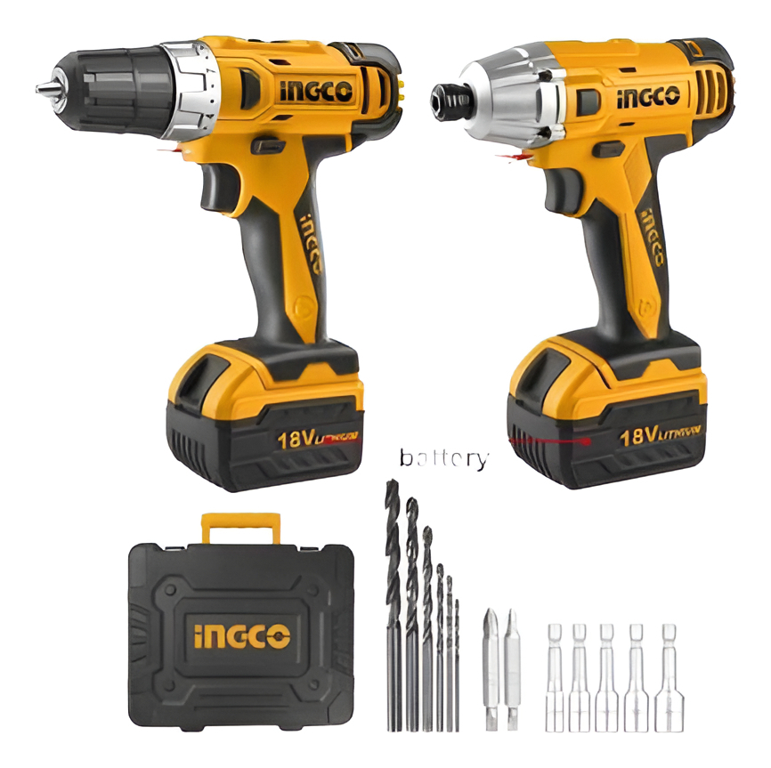 Ff Kit Atornillador + Llave Impacto 2 Bateria Ingco Naranja