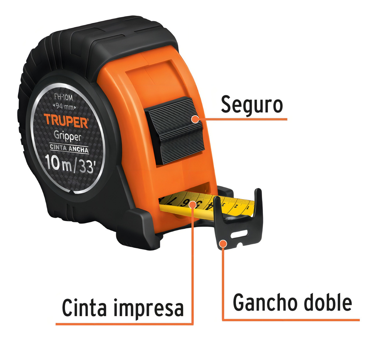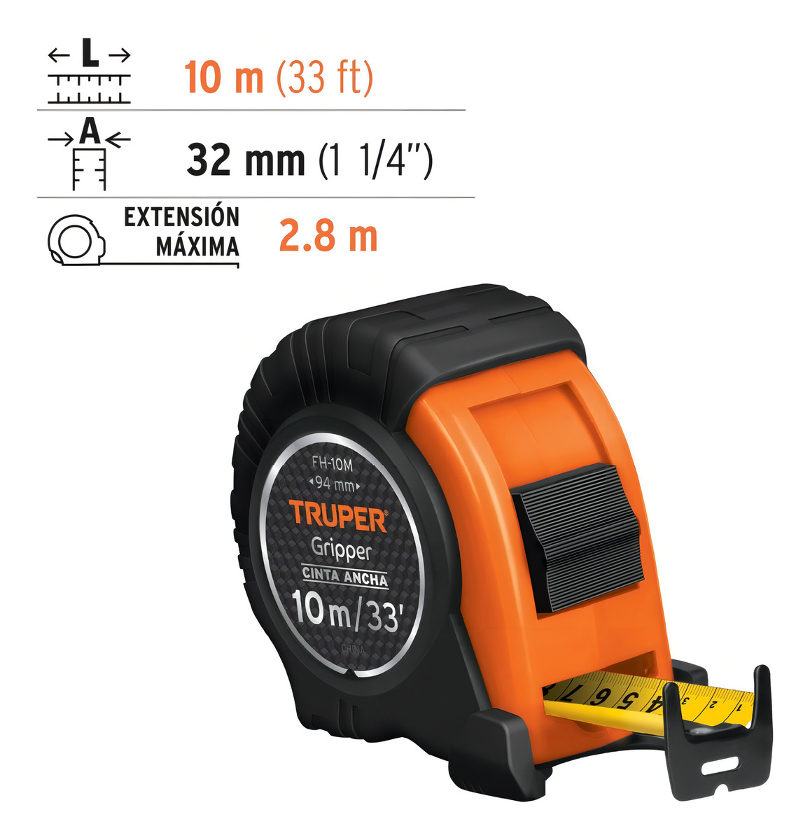 Flexómetro Gripper, Contra Impacto, 10 M, Cinta 32 Mm, 14582