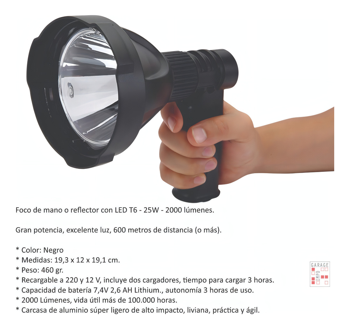 Foco De Mano Reflector Cree Led T6 25w Recargable Color De La Linterna Negro Color De La Luz Blanco