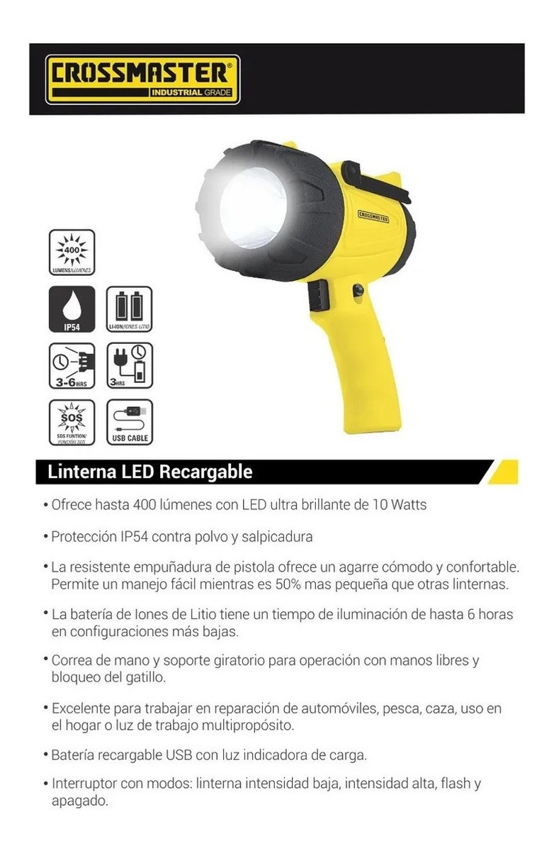 ofrece hasta 400 lumenes con led ultra brillante de 10 watts