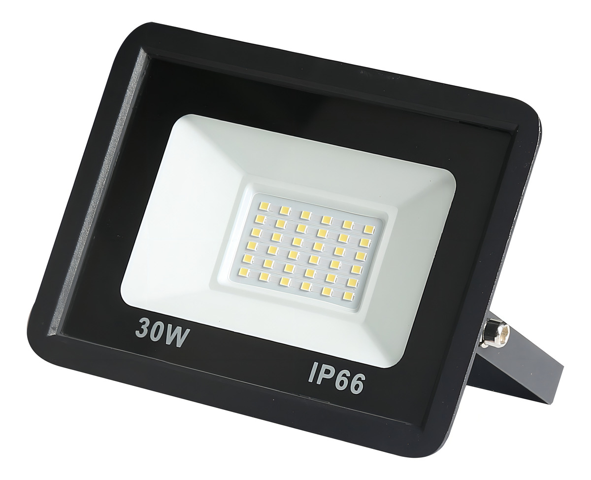 Foco Reflector Led Exterior 30w Con 1 Año Carcasa Negro Luz Cálida