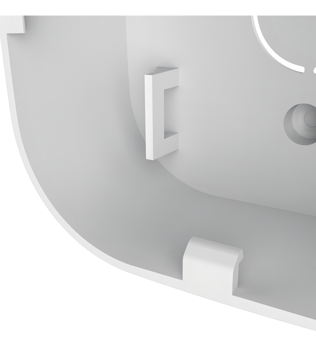 Posee un gancho de sustentación de la tapa, permitiendo sostenerla mientras se realiza la instalación de la cámara.