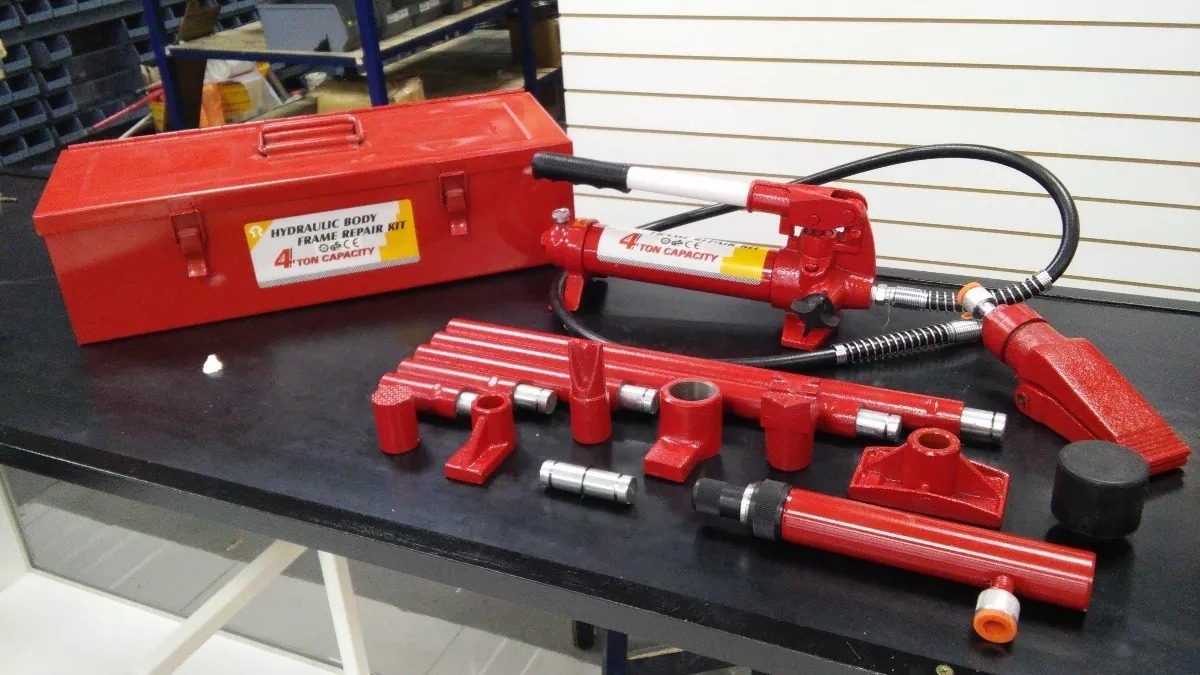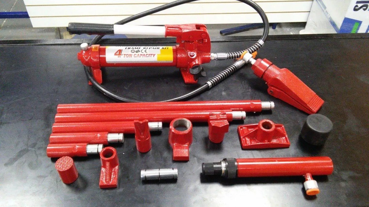 Los kits de gato carrocero portátiles se pueden usar para empujar, extender y presionar los paneles del cuerpo del vehículo así como varios componentes y ensambles.
