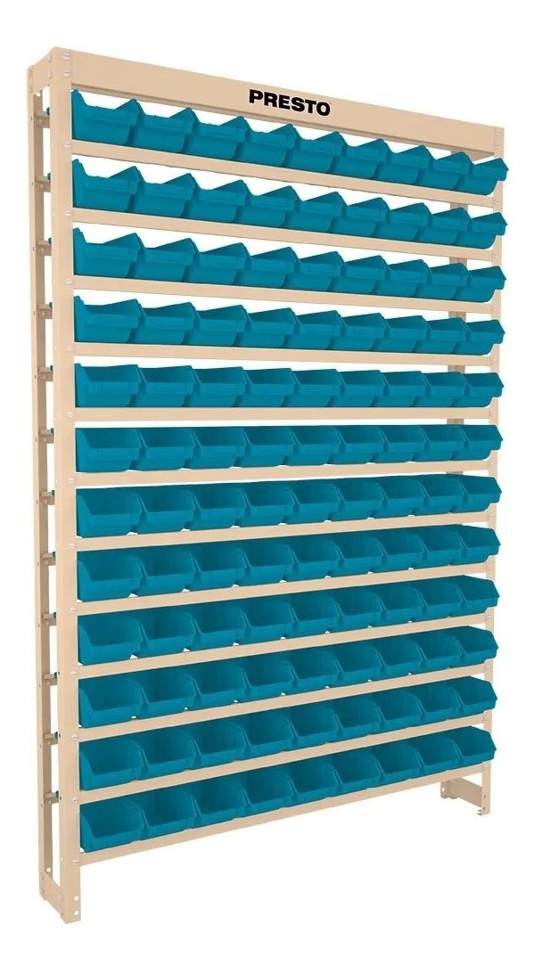 Medidas 950x1500x150mm. Estantería fabricada en acero para utilizar con gavetas plásticas N°5, con sistema de encastre simple y manual. Ideal para organizar diversos productos como, tornillos, tuercas, arandelas, terminales eléctricas y piezas pequeñas en general.