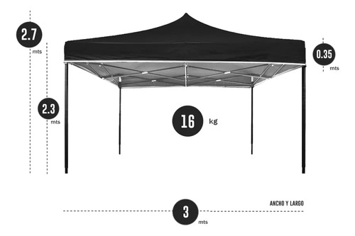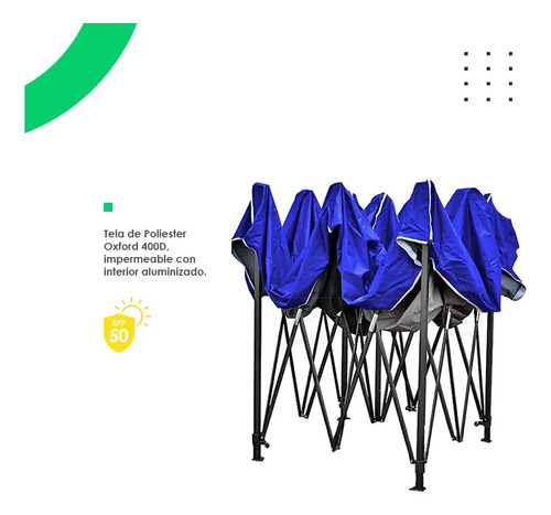 Gazebo 3×3 Reforzado Impermeable Filtro Uv Azul