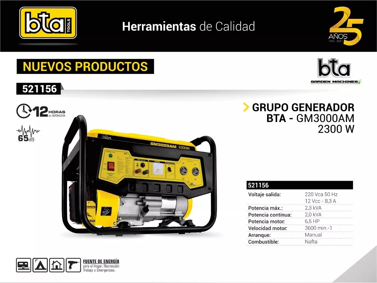 GENERADOR 220V – 2300W – MOTOR 6,5 HP – BTA Tools