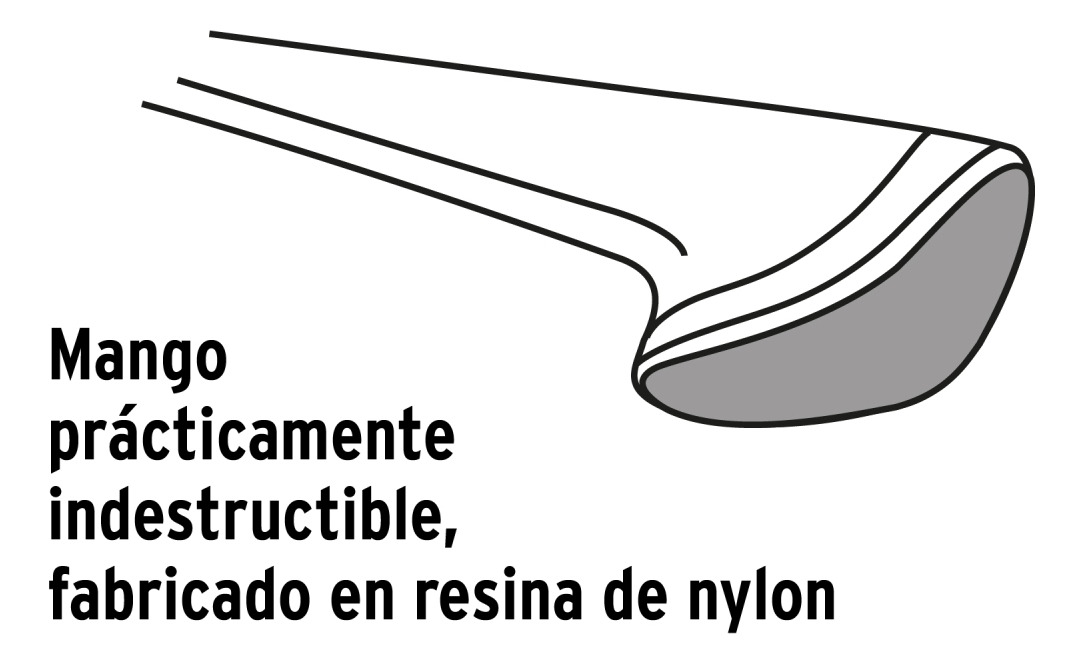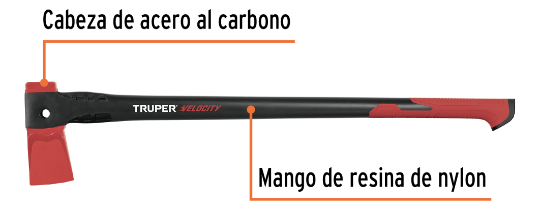 El mango de este hacha está hecho de nailon, un material resistente y ligero que garantiza un agarre cómodo y seguro. Este diseño ergonómico minimiza la fatiga de las manos y mejora el control durante el uso, lo que resulta en un trabajo más seguro y eficiente.
