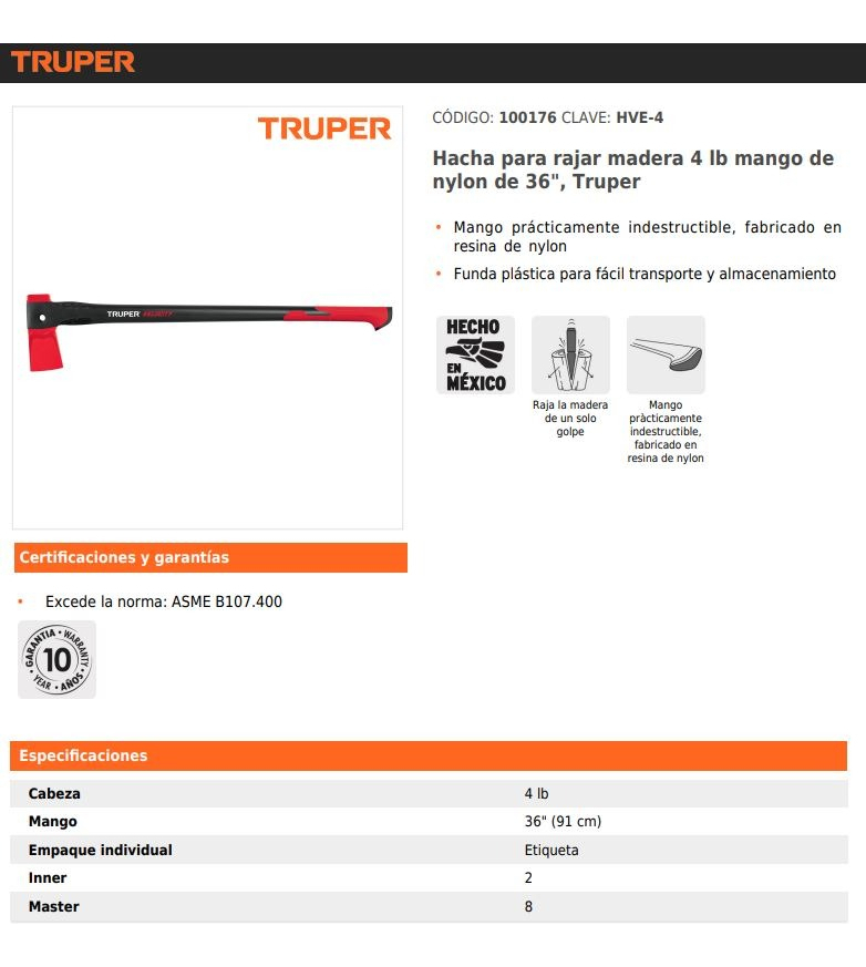 En resumen, el Hacha De Corte 1,8kg 4lb Mango Nylon Truper 100176 – Rex es una herramienta robusta y confiable que te ayudará a realizar tus tareas de corte con facilidad y eficiencia. Ya sea que necesites cortar leña para una fogata, podar árboles en tu jardín o realizar cualquier otra tarea que requiera un corte preciso, este hacha es la elección perfecta.