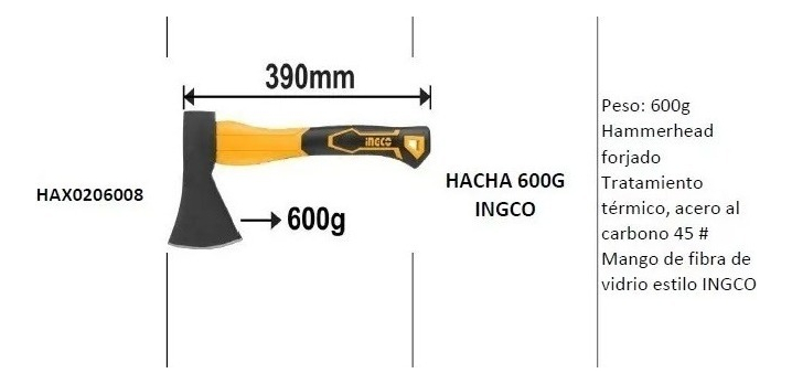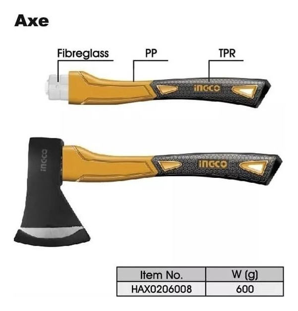 01 – Hacha engomada y cable de fibra Ingco, HAX0206008