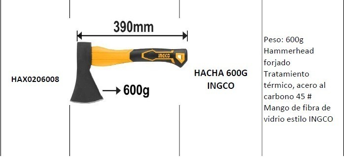 Hacha De Mano 800gr 39cm Ingco Hax0208008 – Tyt