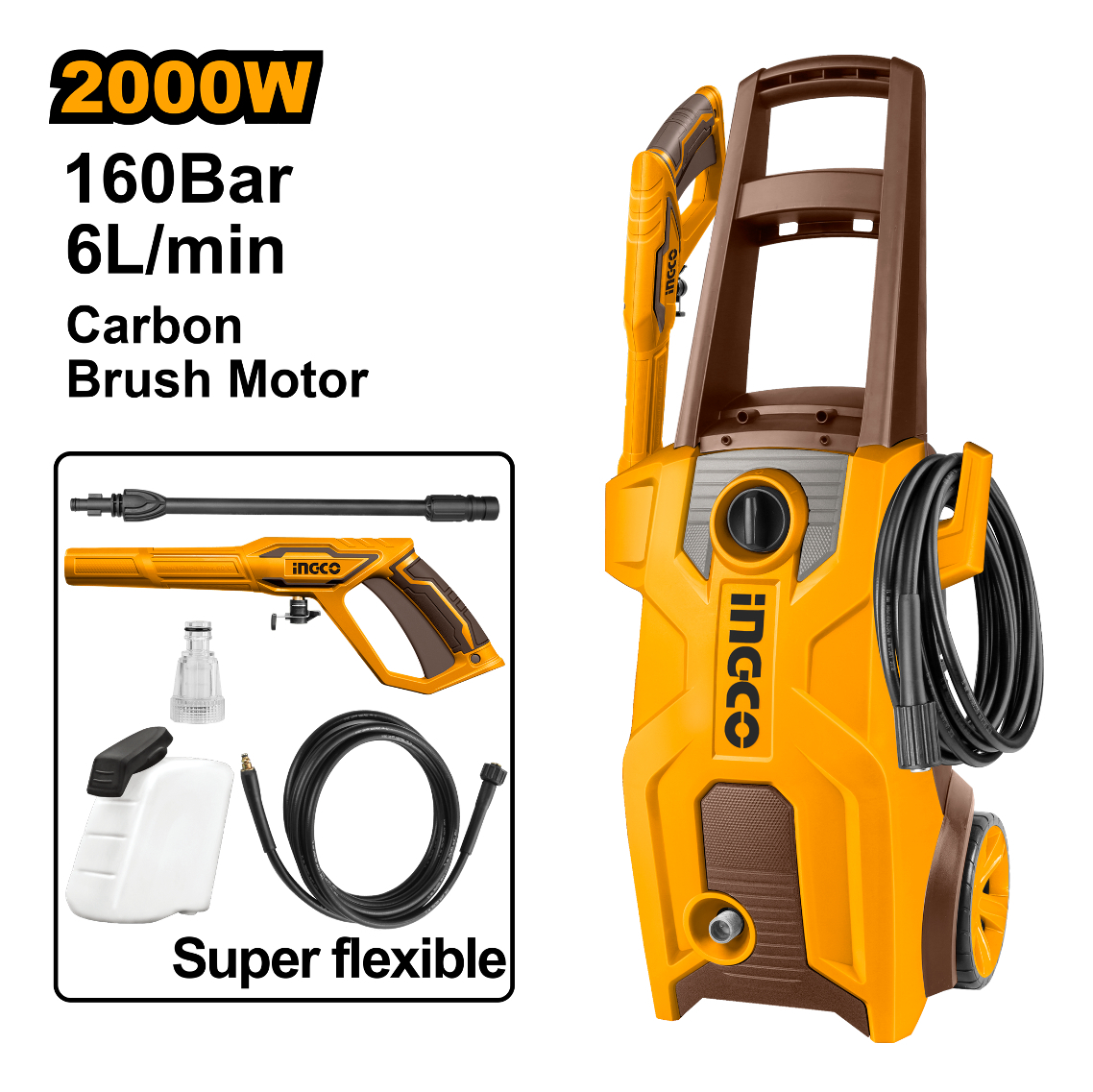 Hidrolavadora 2000w 160bar Motor A Carbones C/autostop Color Amarillo Frecuencia 50 Hz