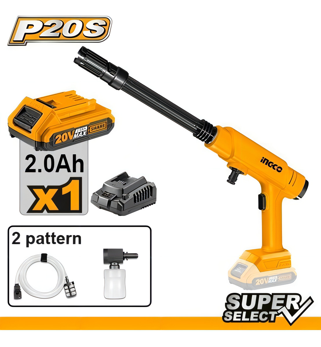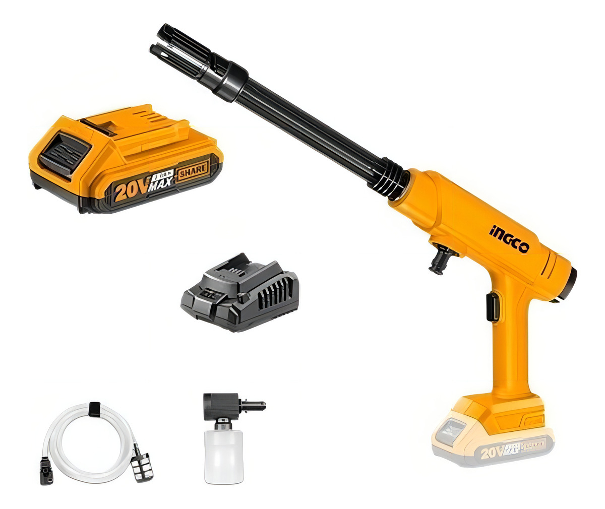Esta hidrolavadora incluye una batería de 20V y un cargador rápido, lo que te permitirá utilizarla de manera inalámbrica y sin interrupciones. También cuenta con un juego de pistola pulverizadora de 2 patrones, ideal para adaptarse a diferentes necesidades de limpieza.