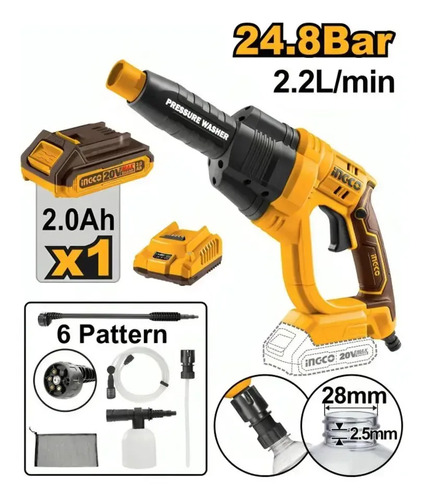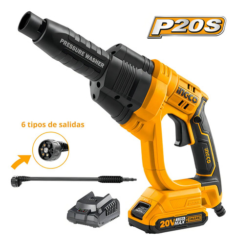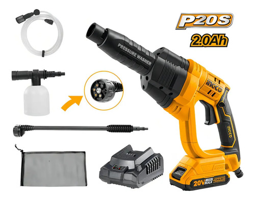Hidrolavadora Bateria 20v P20s Ingco Autoaspiracion De Agua Color Amarillo Naranja 50 Hz/60 Hz
