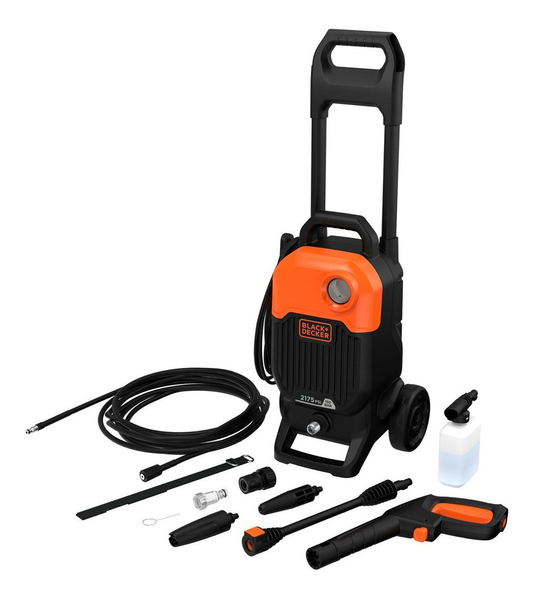 La Hidrolavadora Eléctrica Black+Decker BEPW2200 es la herramienta ideal para mantener tu hogar y espacios exteriores impecables. Con una potencia de 2 kW y una presión máxima de 150 bar, esta hidrolavadora ofrece un caudal de agua de 7.5 l/min, lo que la convierte en una opción eficiente para tareas de limpieza doméstica.