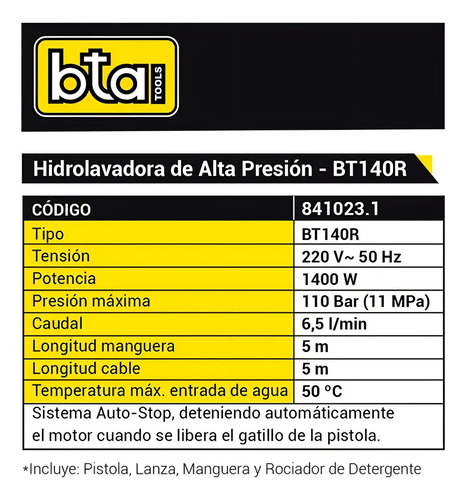 Gracias a su presión máxima de 110 bar, esta hidrolavadora te permite realizar un lavado fácil, rápido y con el menor esfuerzo posible.