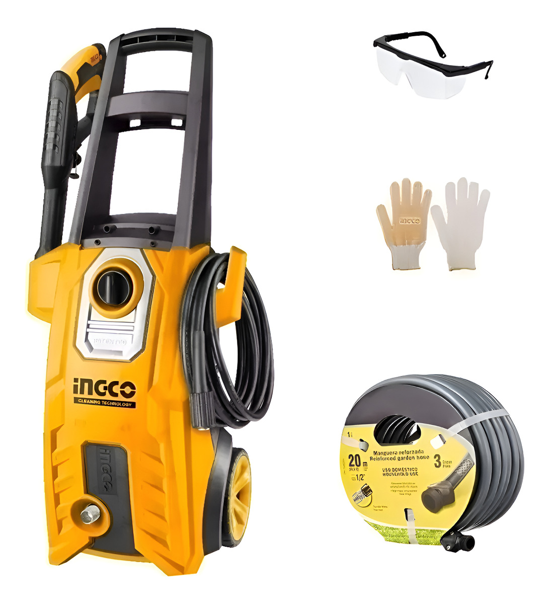 – Incluye: botella para jabón, 1 lanza pistola, 5 mts de manguera alta presión