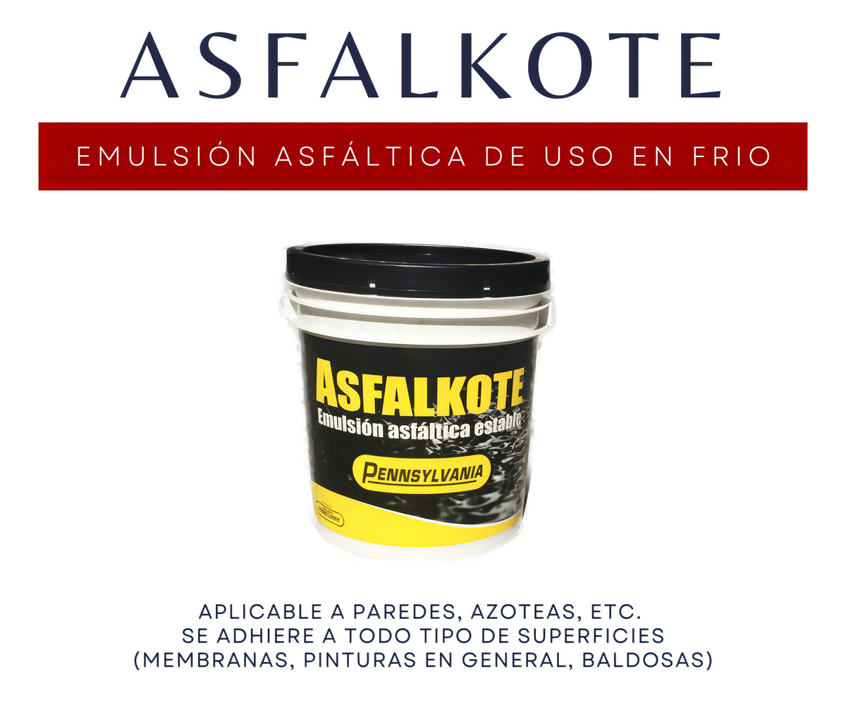 Emulsión asfáltica de uso en frío, aplicable a paredes, azoteas, etc. Se adhiere a todo tipo de superficies (membranas, pinturas en general, baldosas).