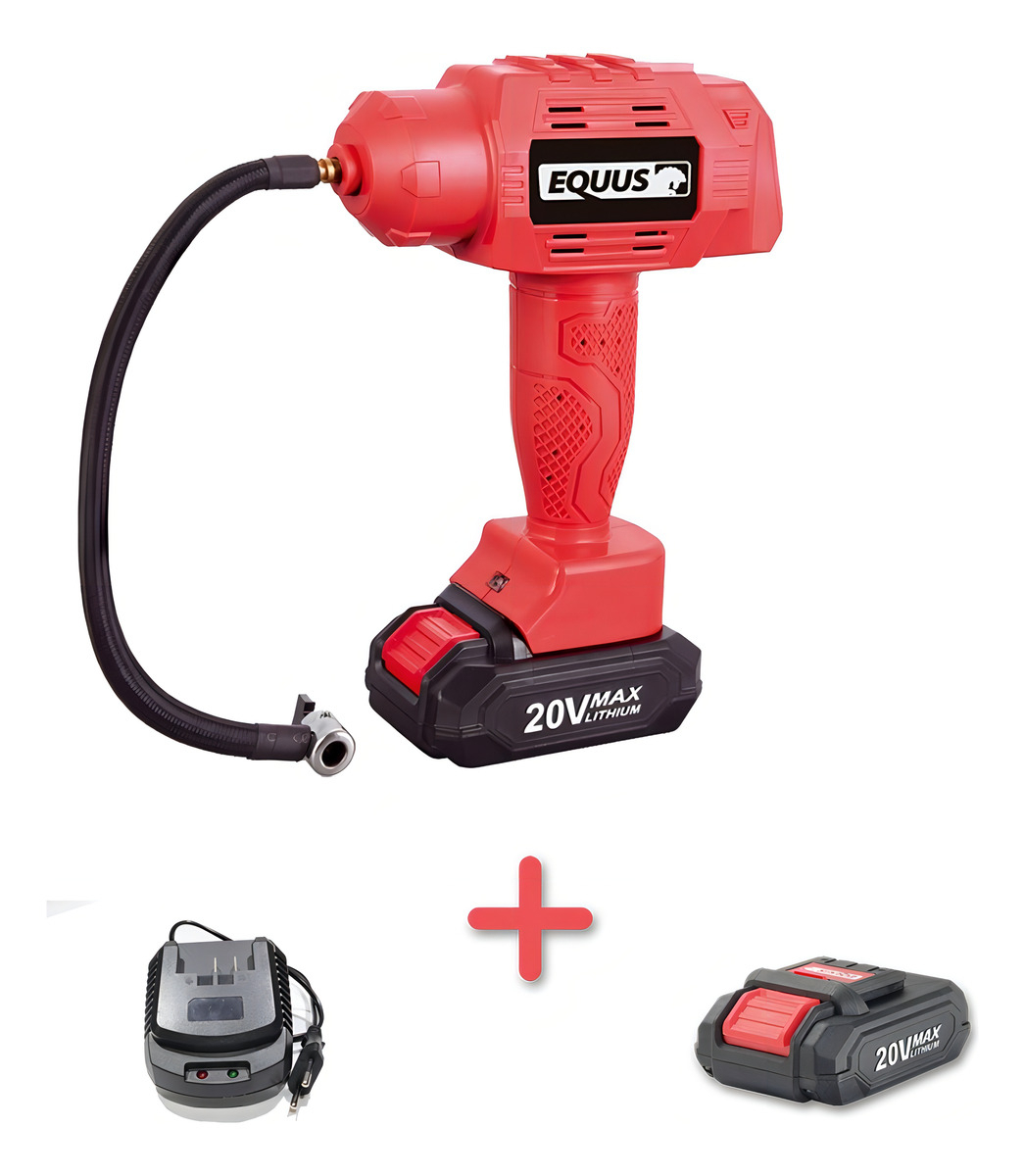 Inflador Pistola + Cargador 20 V + Bateria 2.0 Equus Color Rojo
